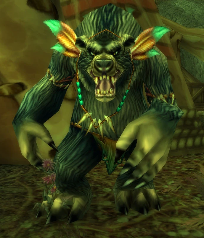 - "Wir sind die letzten Angehörigen des Volks der Furbolgs... Noch ist der Stamm der Holzschlundfeste zwar nicht verderbt, doch von Fremden schlägt uns dieselbe Feindseligkeit entgegen wie den anderen. Die meisten Leute glauben, es sei gar nicht möglich, dass es Furbolgs geben könnte, die der Verderbnis entgangen sind... In ihrer Wut auf all diejenigen, die sich übereilt Feinde machen, greifen meine Brüder jetzt alle an, die sich ihnen nähern. Sie trauen niemandem mehr. Aber wenn Ihr Euch ihnen gegenüber bewusst friedlich verhaltet, dann sehen sie Euch vielleicht als Verbündete an."
