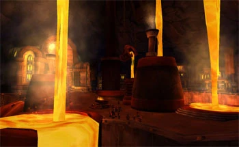 | “ | Ströme von geschmolzenem Metall plätscherten wie Wasser und leuchteten in allen Schattierungen von Rot, Gelb und Orange. Die Schmiede war so überwältigend groß, dass Anduin sie kaum erfassen konnte. Zumindest hatte sein Kopf Mühe damit.[2] | ” |