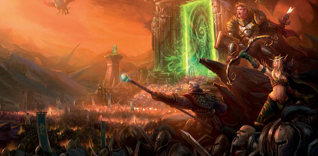 Aufgrund von Khadgars Befürchtungen schickte Turalyon indes zunächst Danath Trollbann mit einer kleinen Armee zum Portal, um in der Zwischenzeit den Rest der Allianztruppen für den Marsch nach Süden vorzubereiten.[29][30] Nur wenige Wochen nach Khadgars Warnung erreichte Ner'zhul auf der anderen Seite des Portals sein Ziel und Grommash Höllschrei führte abermals Truppen nach Azeroth, welche die Allianzsoldaten sogleich in erbitterte Kämpfe verwickelten.[31] Die Schlacht entwickelte sich zu einem Patt, nachdem auch Turalyon mit seiner Verstärkung eingetroffen war und allmählich dämmerte den Verteidigern, dass die Horde vor allem Zeit schinden wollte. Die Gefangennahme und das von Turalyon mit Hilfe des Lichts durchgeführte Verhör von Gaz Soulripper bestätigte den Verdacht: Ner'zhul hatte kein Interesse an einem Eroberungsfeldzug, sondern suchte lediglich nach mächtigen Artefakten.[32][33] Sodann beschlossen Khadgar und Turalyon, dass der Horde auf Draenor selbst Einhalt geboten werden müsste und die "Allianzexpedition" wagte die Reise durch das Dunkle Portal ins Ungewisse.[34][35]