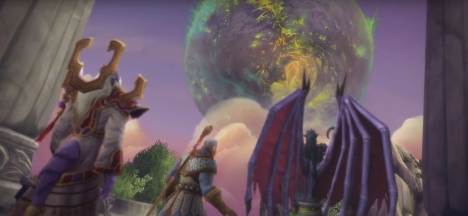 Der Feldzug endete schließlich mit der Niederlage der Legion[110], jedoch zu einem hohen Preis: bevor Sargeras vom Pantheon eingesperrt werden konnte, holte er noch einmal aus, um Azeroth eine folgenreiche Wunde zuzufügen.[111]